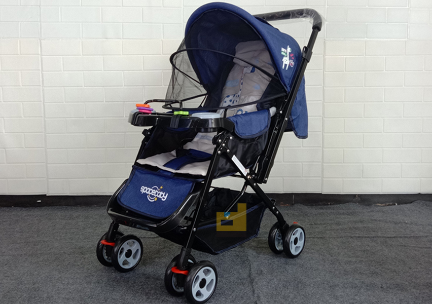 kereta dorong sb-6202, biru bisa dilipat, cocok untuk anak kecil umur 0-12 bulan