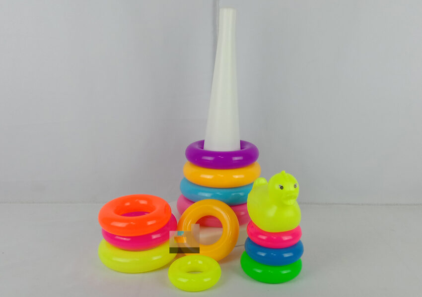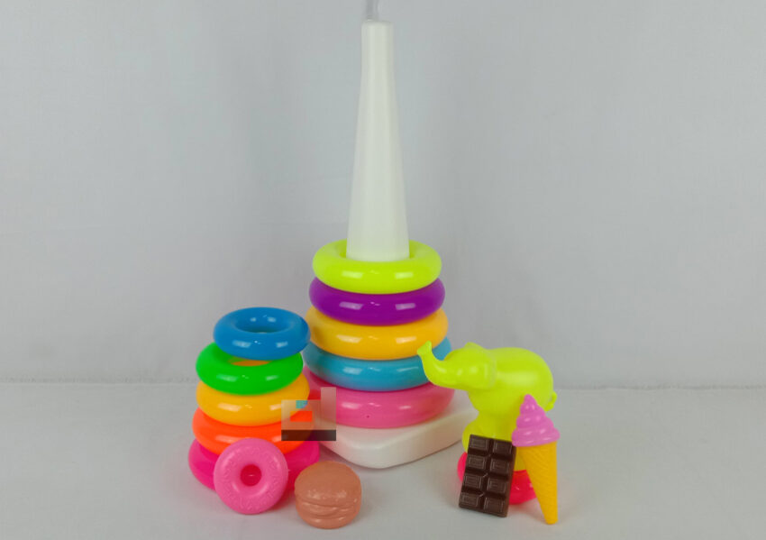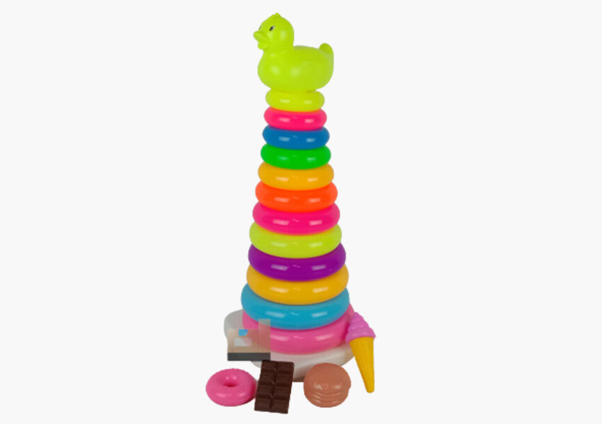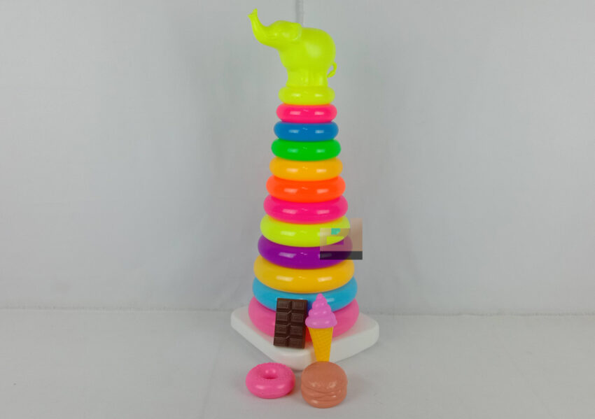 Ring Donat terdiri dari susun susun donat warna warni dan di ujung ada karakter hewan