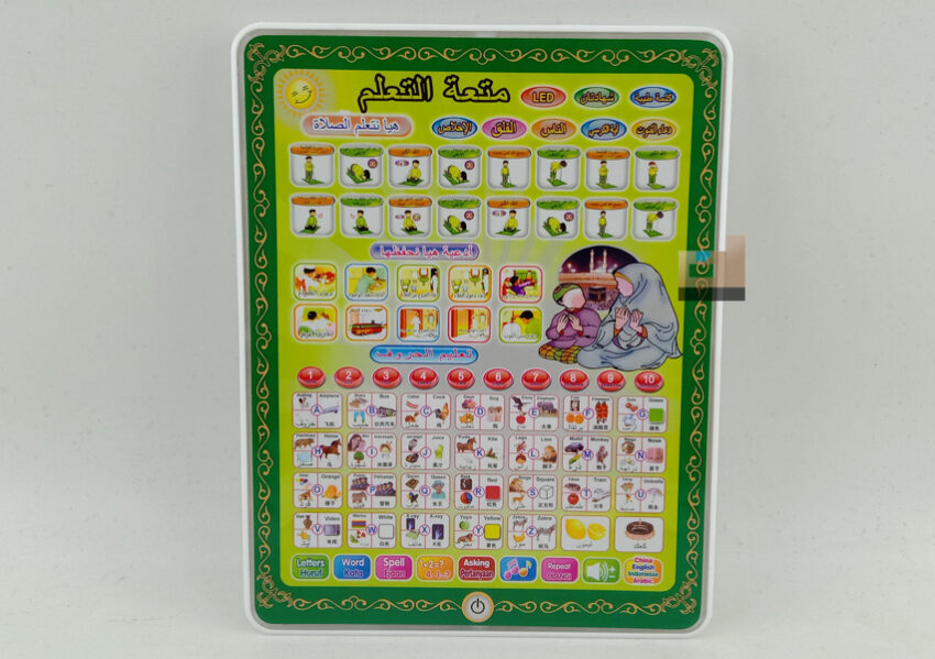Mini Play Pad ini faktanya cocok untuk elajar angka, huruf, nama hewan, nama benda, spelling, mode pertanyaan (dimana angka, dimana huruf, dimana kata), melody, bacaan sholat dan wudlu