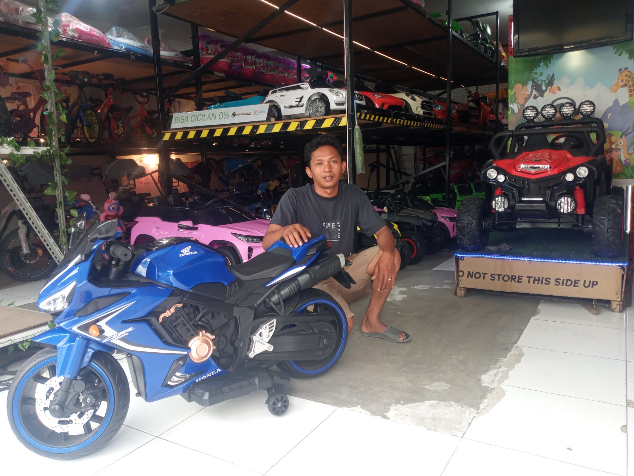 mainan motor aki anak kyz 023 m cbr style, biru. keren & elegan! fitur lengkap, gas tangan, music, Lampu Led, Hadiah terbaik untuk sikecil!