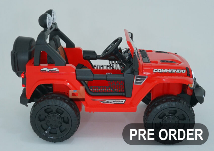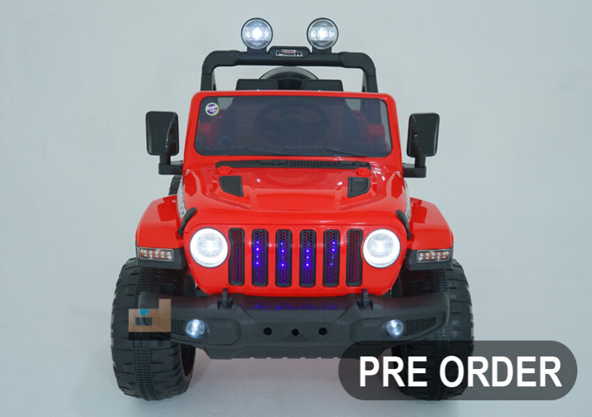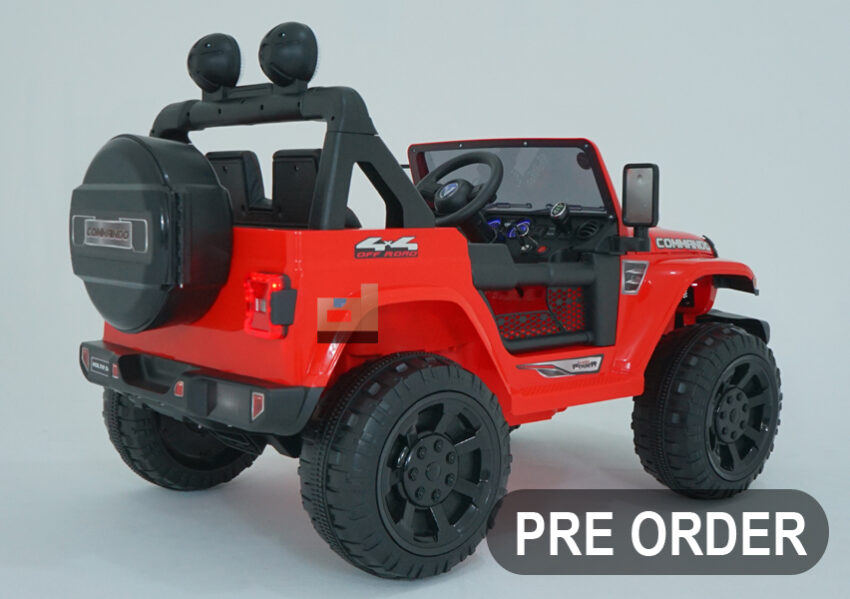 Mobil Aki Jeep ROCKY – VOLTA 5008 – 131 x 71 x 85 Cm, Mobil Cas, merah. Keren & elegan! fitur lengkap: remote, charger, lampu led. Hadiah terbaik untuk si kecil.