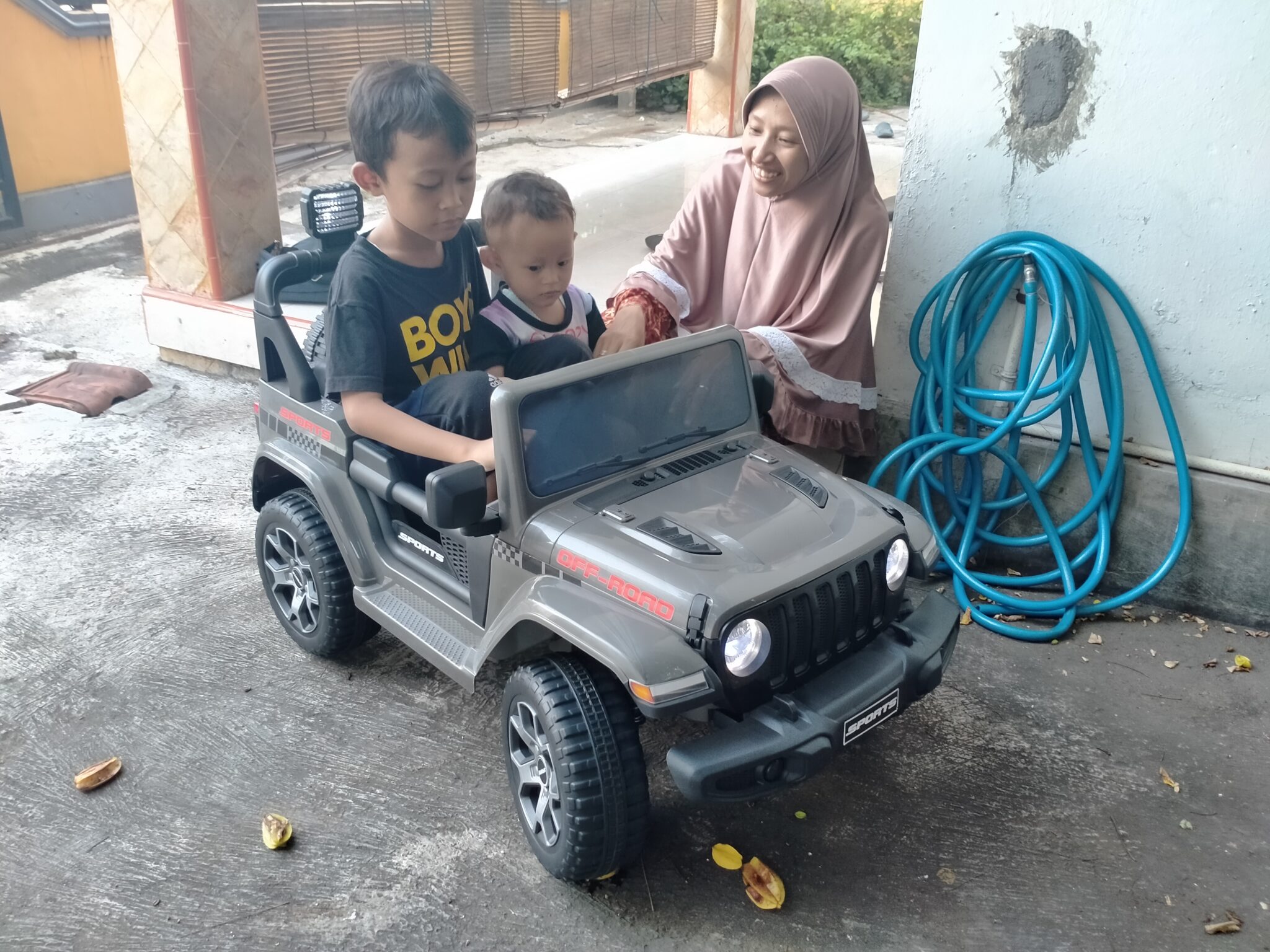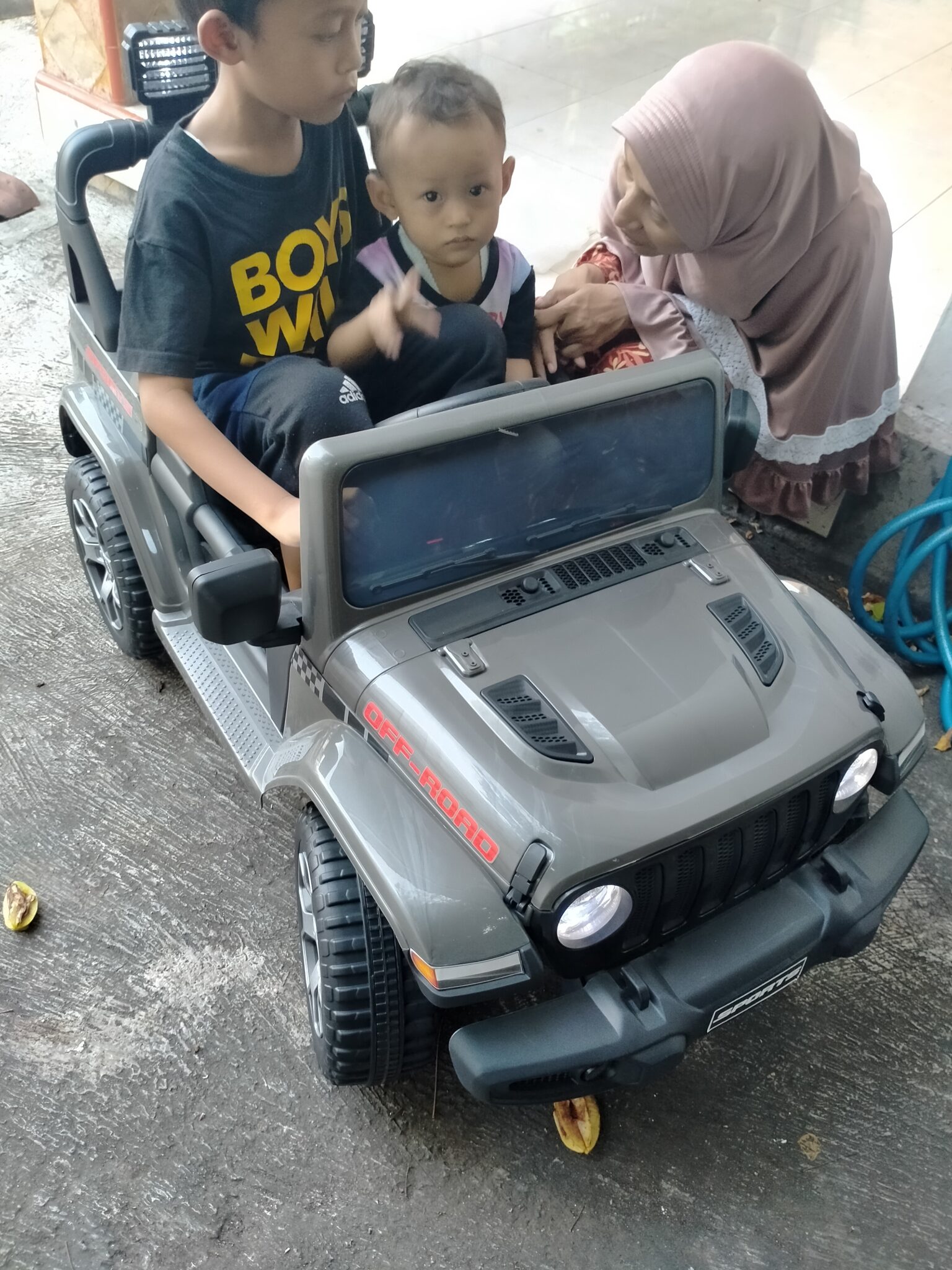 Mobil Aki Jeep 12 Volt Ban karet M-8288 Abu-abu