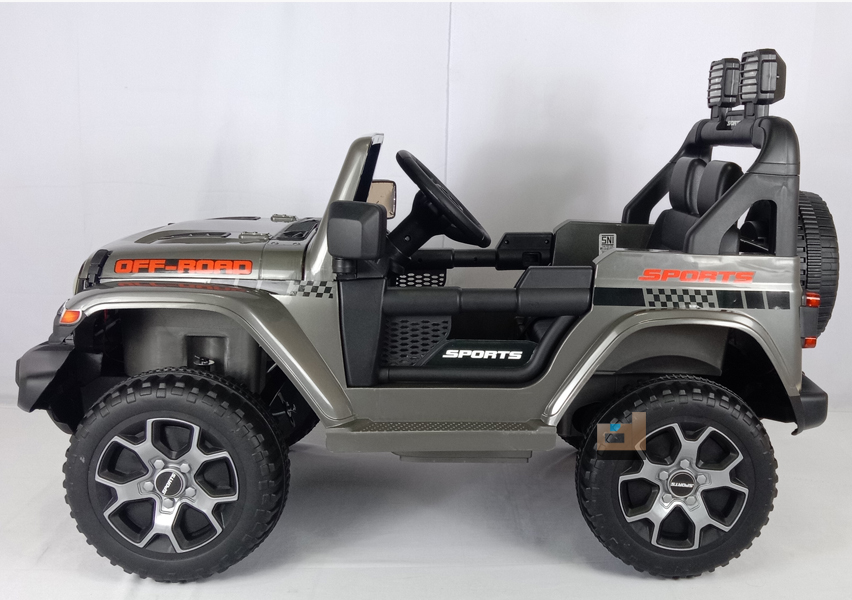 Mobil Aki Jeep 12 Volt PMB M-8288 – 90 x 60 x 65 Cm, Mobil Cas, Abu keren & elegan! fitur lengkap, music, Lampu Led, Hadiah terbaik untuk sikecil!