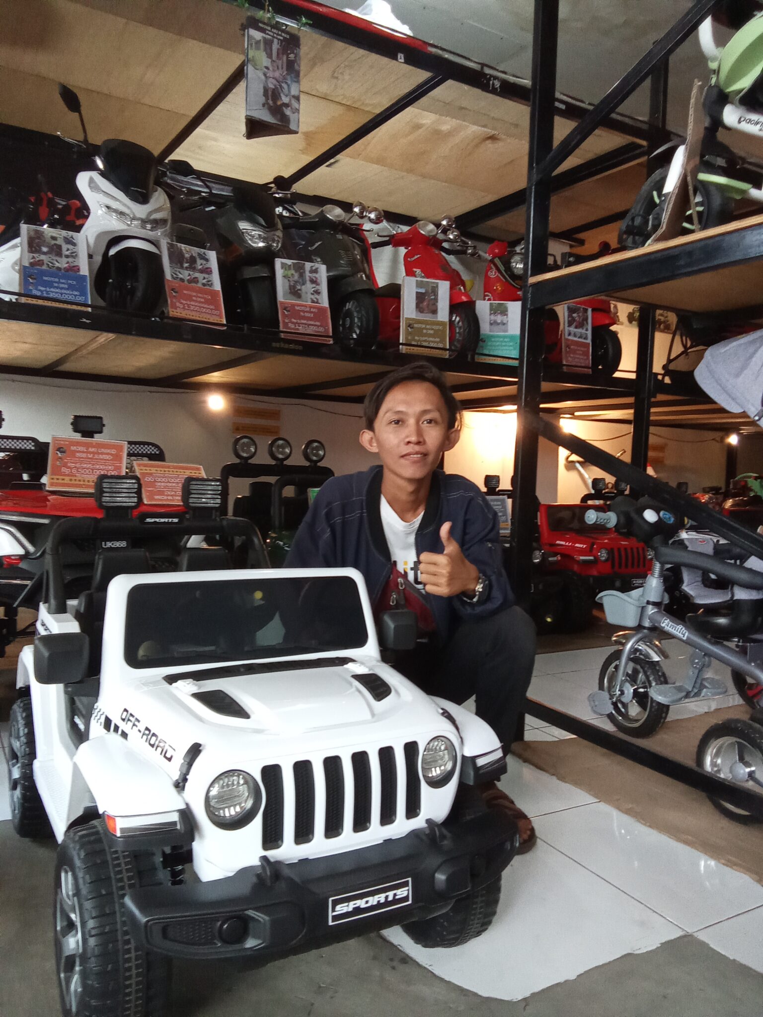 Mobil Aki Jeep 12 Volt PMB M-8288 – 90 x 60 x 65 Cm, Mobil Cas, Putih keren & elegan! fitur lengkap, music, Lampu Led, Hadiah terbaik untuk sikecil!