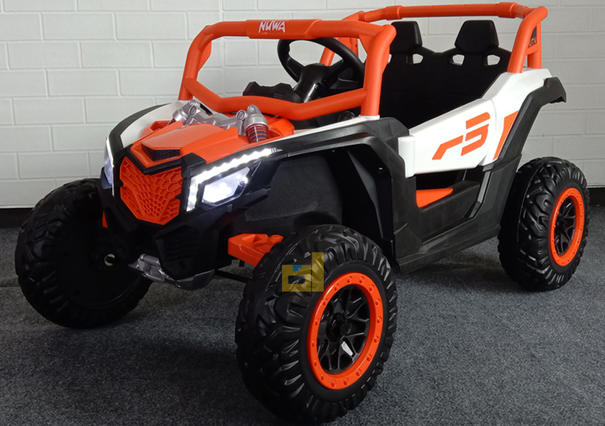 mobil aki jeep nuwa nw-110, putih orange. Keren & elegan! Fitur Lengkap: musik, usb,remote, lampu LED. Hadiah terbaik untuk si kecil!