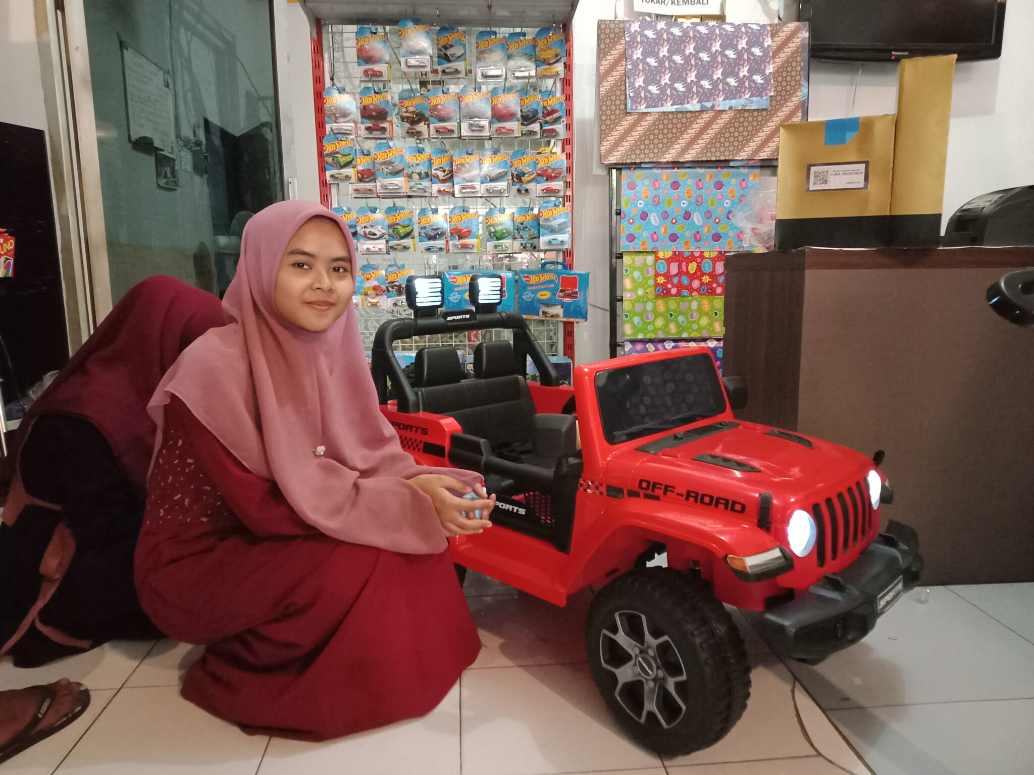 Faktanya merupakan sebuah mainan mobil aki keren karena desain mirip dengan mobil jeep asli