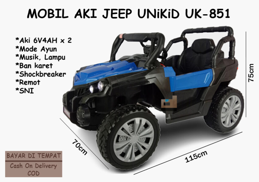 Mobil Aki Jeep UNiKiD UK-851, Biru . keren dan elegan ! fitur lengkap : musik,lampu led, remote control. hadiah terbaik untuk si kecil