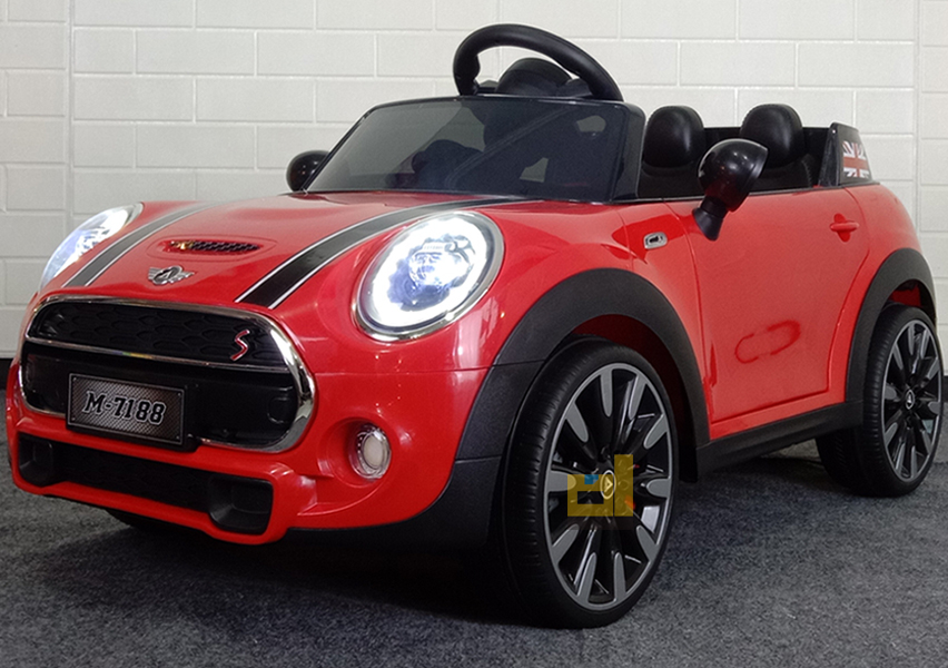 mobil aki mini cooper m-7188, merah. Keren & elegan! Fitur Lengkap: musik, usb, lampu LED. Hadiah terbaik untuk si kecil!