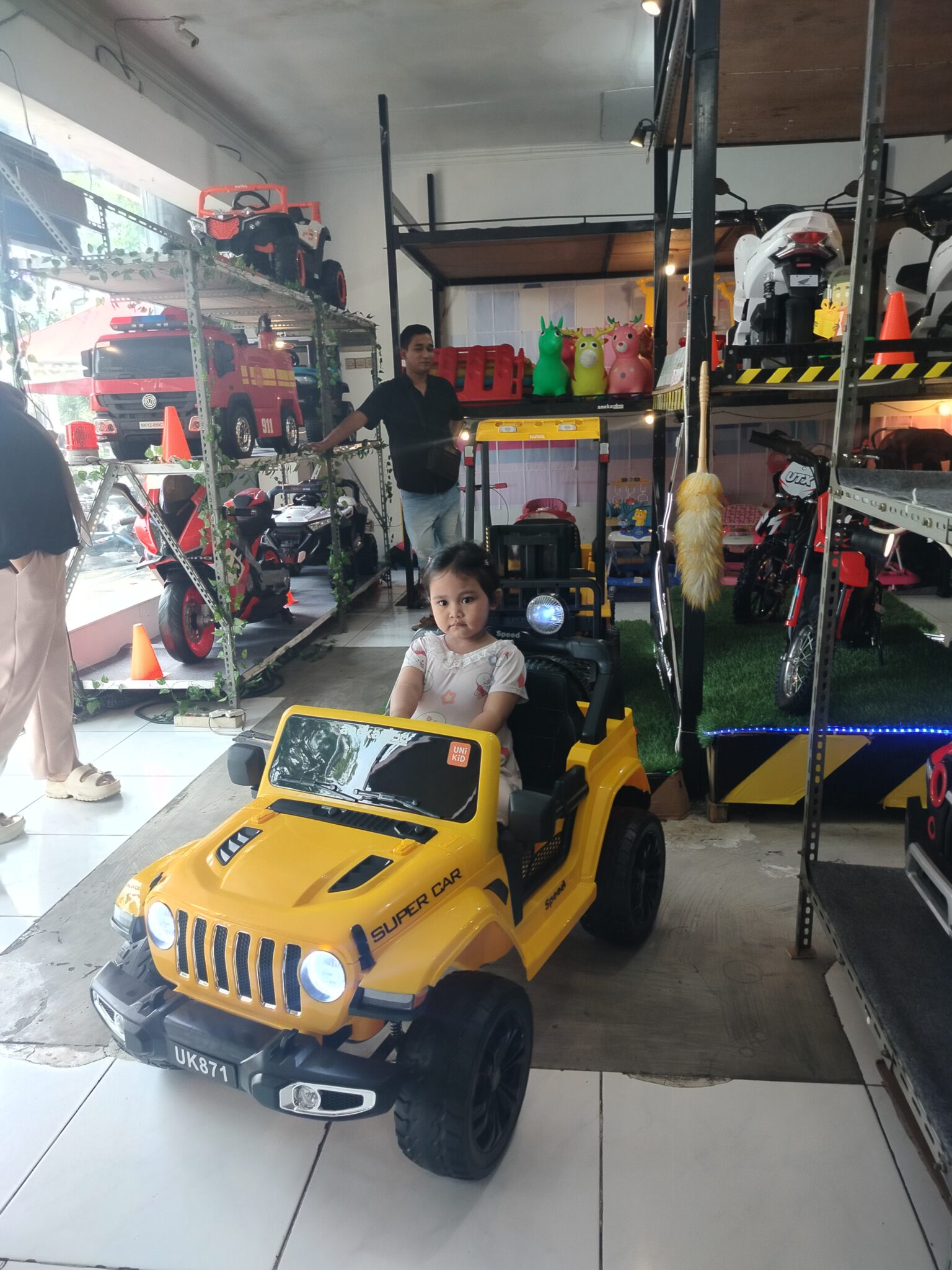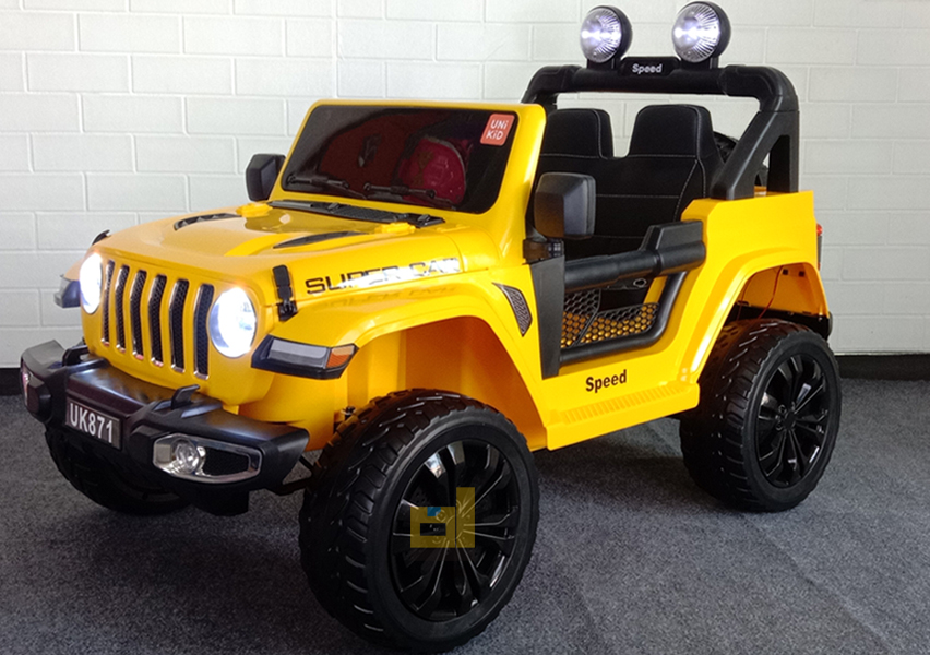 mobil aki unikid uk-871, kuning. Keren & elegan! Fitur Lengkap: musik, usb,remote, lampu LED. Hadiah terbaik untuk si kecil!