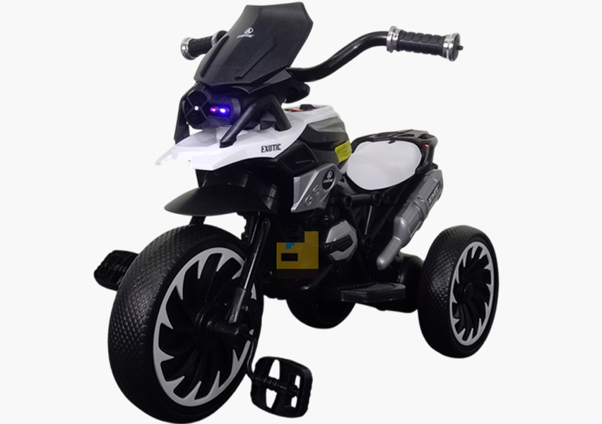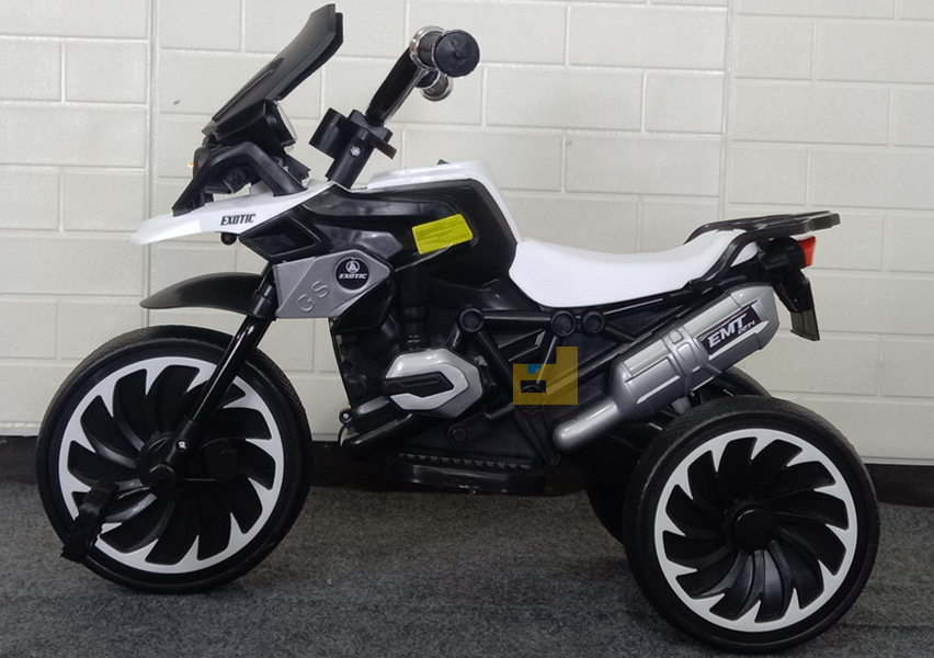 motor aki exotic emt-2214, putih. Keren & elegan! Fitur Lengkap: musik, usb, remote, lampu LED. Hadiah terbaik untuk si kecil!