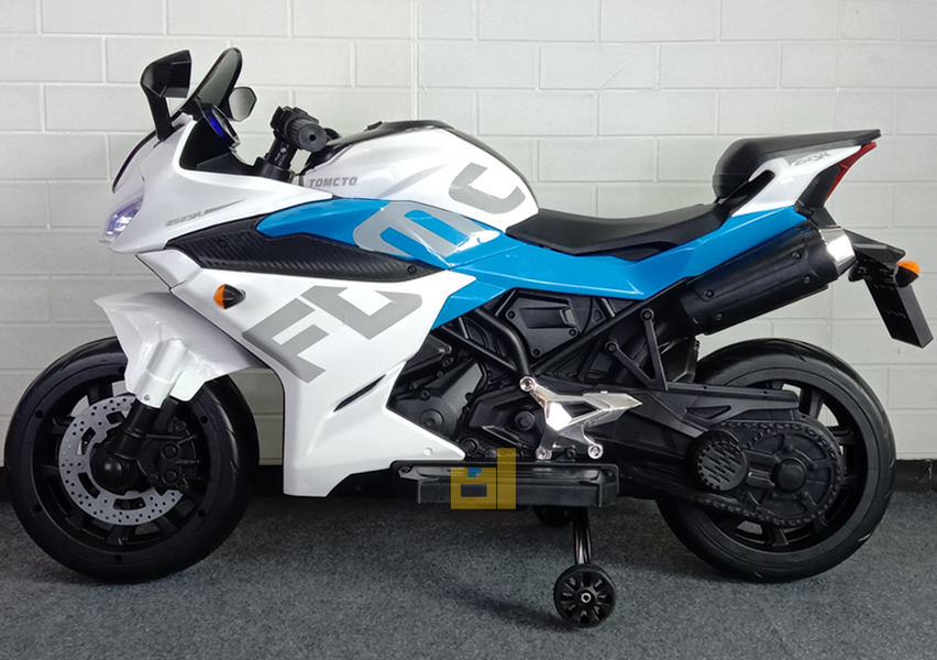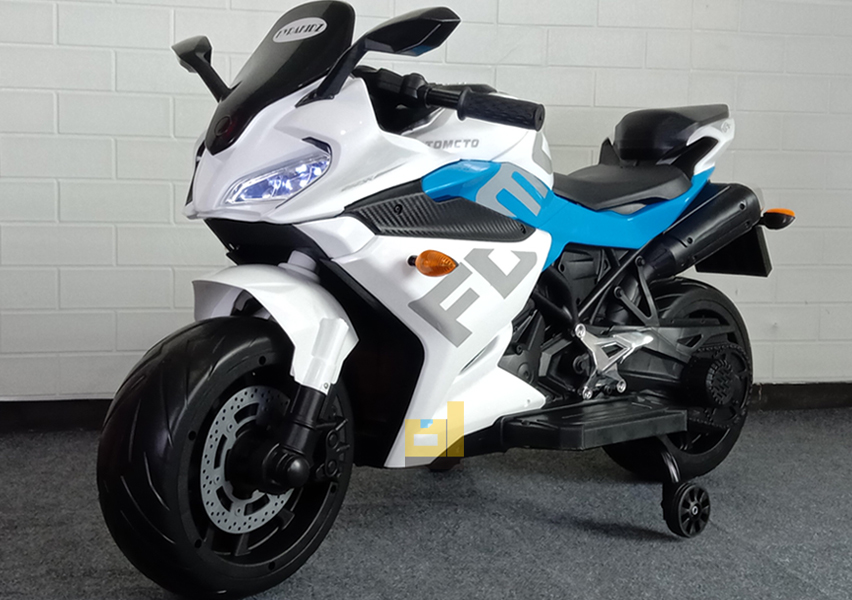 motor aki sport kyz-025,putih biru. Keren & elegan! Fitur Lengkap: musik, usb,remote, lampu LED. Hadiah terbaik untuk si kecil!