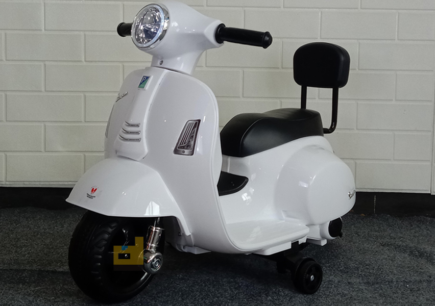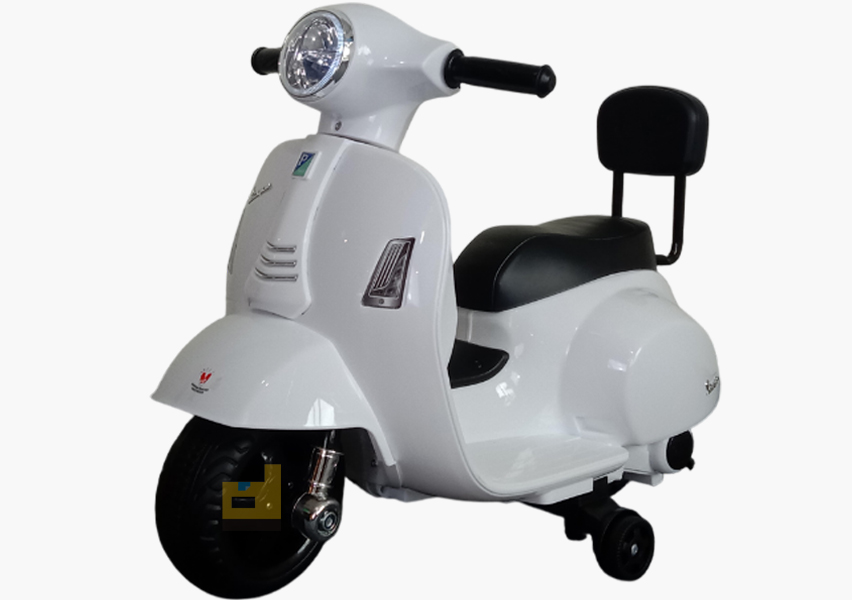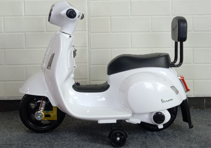motor aki mini vespa m-788, putih. Keren & elegan! Fitur Lengkap: musik, usb, lampu LED. Hadiah terbaik untuk si kecil!