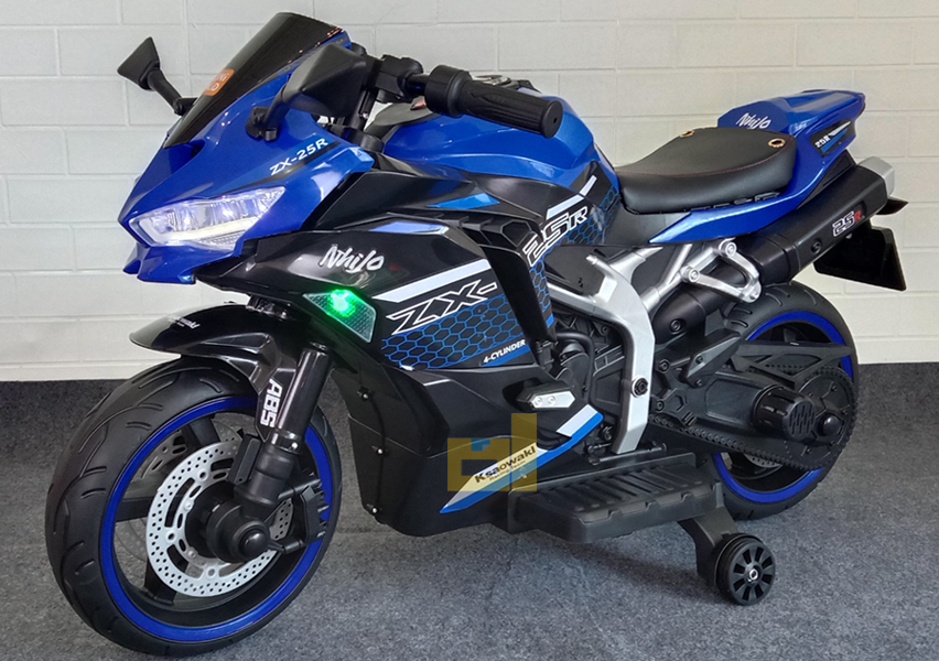 motor aki ninja zx 25r, biru. Keren & elegan! Fitur Lengkap: musik, usb, gas tangan, lampu LED. Hadiah terbaik untuk si kecil!
