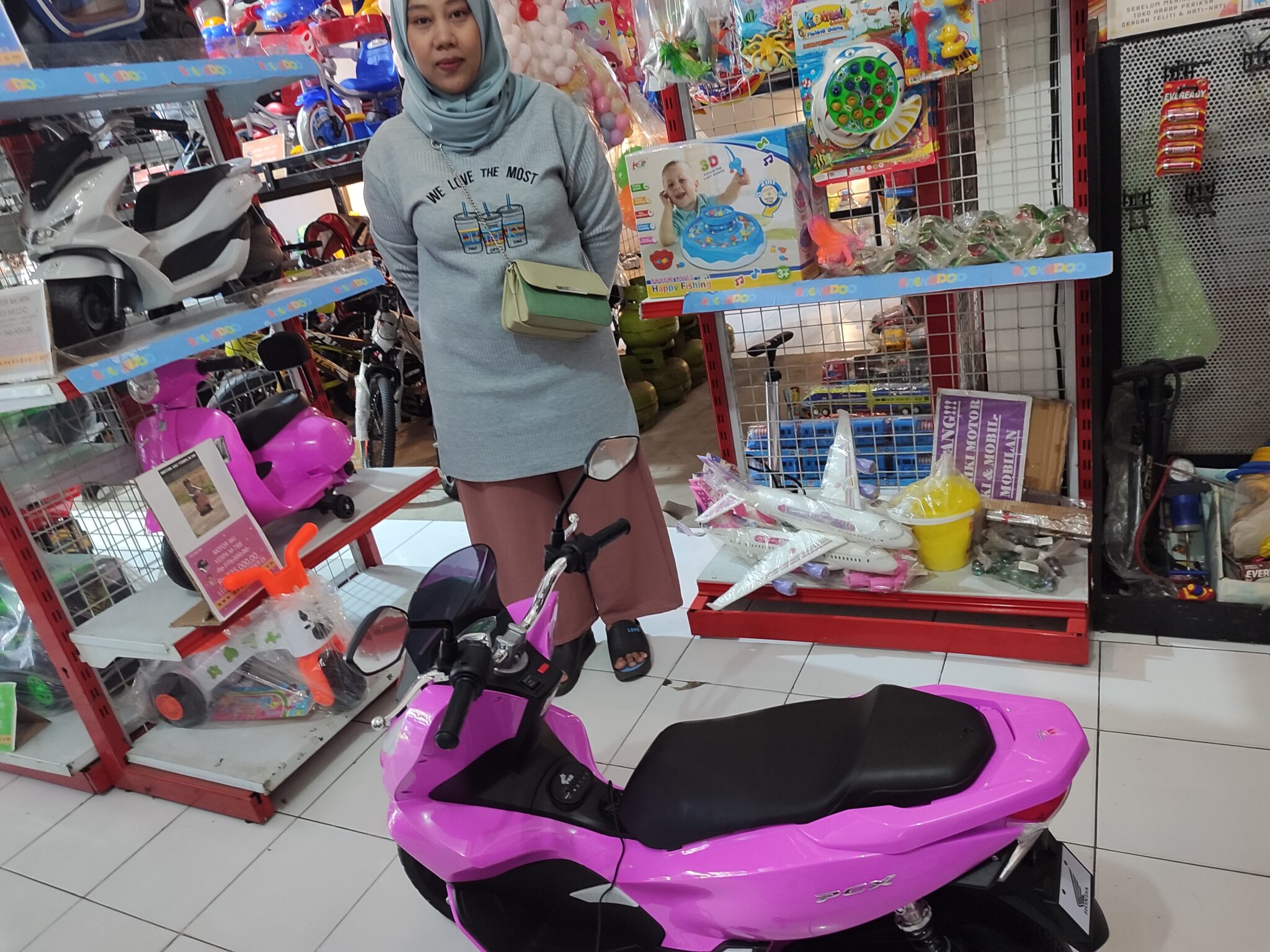 Motor Aki pcx M-988,Pink. keren dan elegan ! fitur lengkap : musik,lampu led, gas tangan. hadiah terbaik untuk si kecil