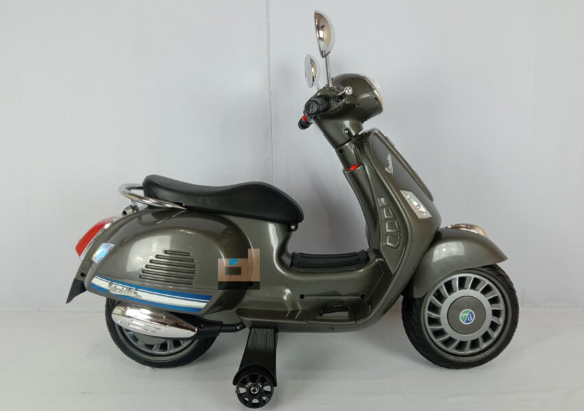 Motor Aki Vespa Scooter Vestic M-288, Abu. keren & elegan! fitur lengkap: gas tangan, music, lampu led,Hadiah terbaik untuk si kecil!