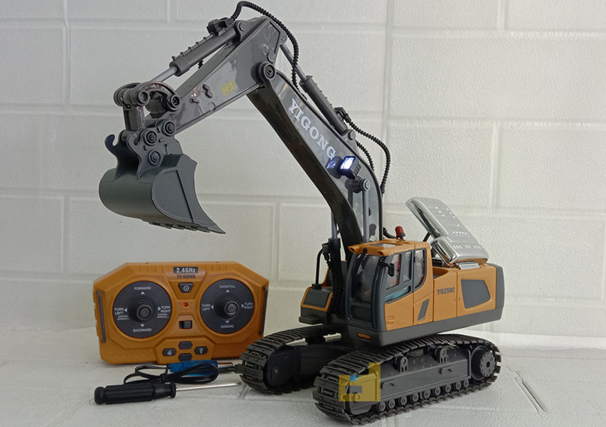 mainan anak R/C excavator yigong coklat. Keren & elegan! Fitur Lengkap: remote, baterai lampu LED. Hadiah terbaik untuk si kecil!