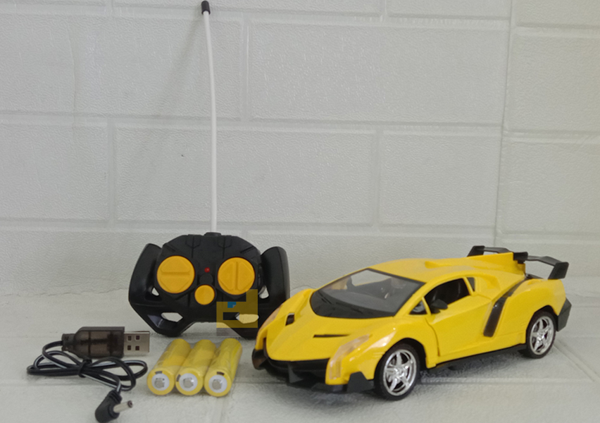 mainan anak R/C top speed kuning. Keren & elegan! Fitur Lengkap: remote, musik, lampu LED baterai. Hadiah terbaik untuk si kecil!