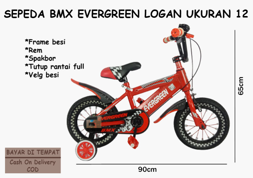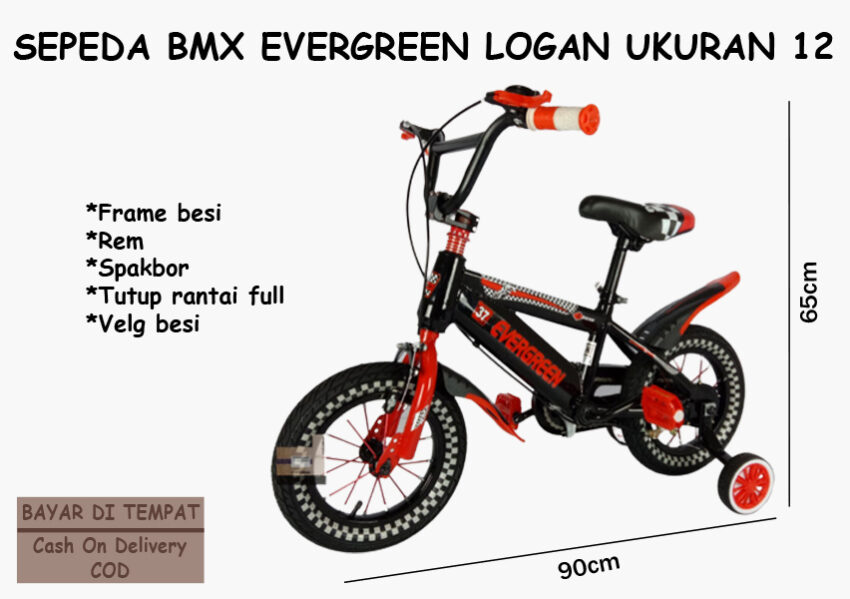 Sepeda BMX Logan Evergreen Ukuran 12, Sepeda BMX Roda Tiga, Ban Hidup & Tebal, Sepeda, Sepeda BMX, Merah faktanya cocok untuk si kecil dan aman karena sudah berlogo SNI