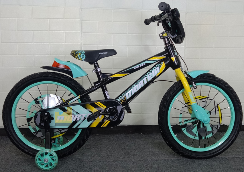 fitur lengkap: plastic pendal, pelindung depan dengan musik cahaya, penutup rantai, pelindung lumpur+lampu, roda latihan+lampu, ban eva